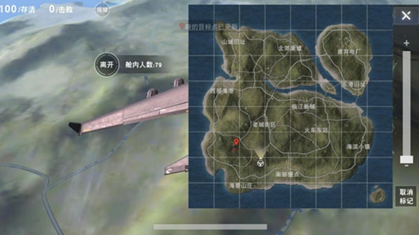 1、 每次开局飞机会随机从一个方向直线开出来,上飞机后第一件事,先打开小地图观察一下飞机航向,以及标记一下想要飞行的点,毕竟在跳伞的途中一直开着小地图很不方便。降落地点观察地图上有白色标记的地方,白色越多房子越多。