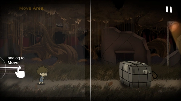 2、正式开始后左边控制角色移动,按住右边屏幕是互动,向上滑动是跳跃。