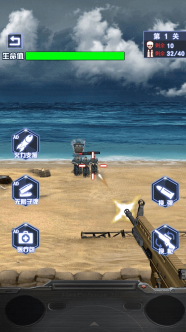 3.你必须面对很多敌人,包括空中的战斗机和地面的车辆,你必须小心,游戏中可以使用各种枪械。