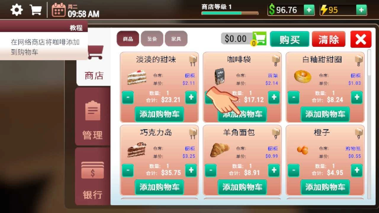 7、玩家在电脑里可以订购新的咖啡和小蛋糕。