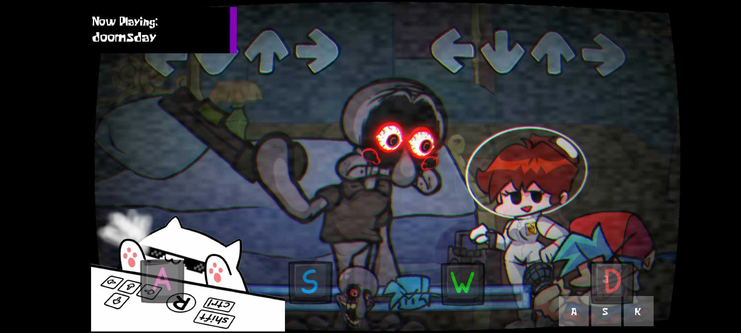 《深红模糊的早晨》是一款十分有趣的FNF模组,也是黑色星期五之夜系列的又一精彩作品。在这个游戏里,你将踏入海绵宝宝的世界,与其中形形色色的角色展开一场场说唱对决,努力赢得胜利并净化他们的心灵。而在《深红模糊的早晨v2》中,你需要根据屏幕上的上下左右箭头进行点击操作,完成歌曲演唱,还要和蓝色章鱼一较高下。