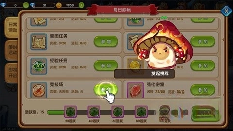 在游戏界面,轻轻一击进入每日必玩,竞技场战斗即将开始。