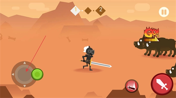 1、进入游戏关卡后,可通过滑动左侧方向键来控制角色移动。