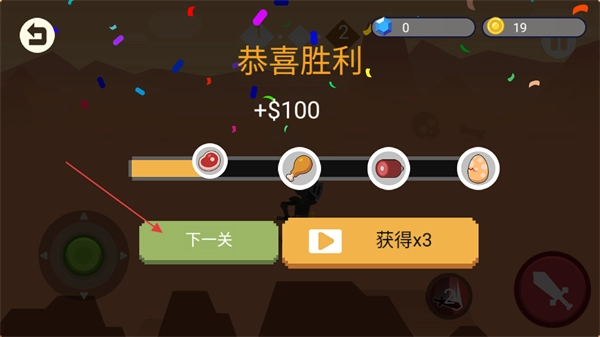 4、到达终点后即为通关,获得金币奖励后点击下一关即可快速开启新的挑战。