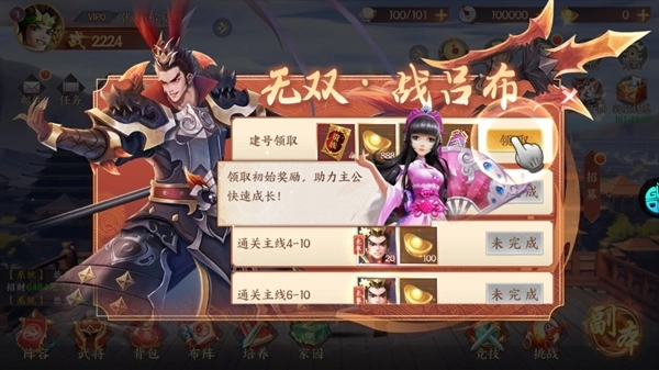★完成闯关任务赠送千次抽奖机会,参与七日目标活动可获得武将小乔★每日在线送VIP,轻松拿特权,好玩不氪;