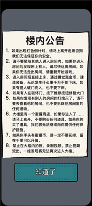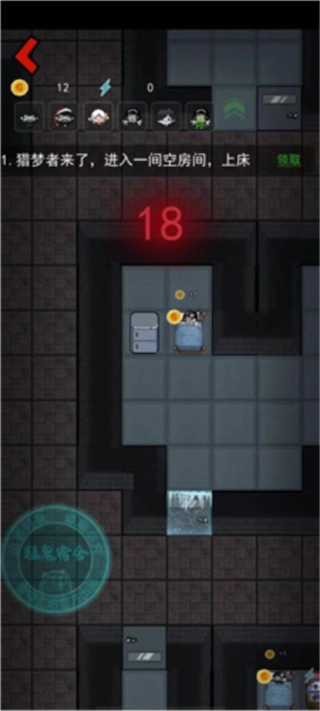 4、接下来要在倒计时结束前找到空房间睡觉,在此期间会得到金币,用于建造和升级防御设施;