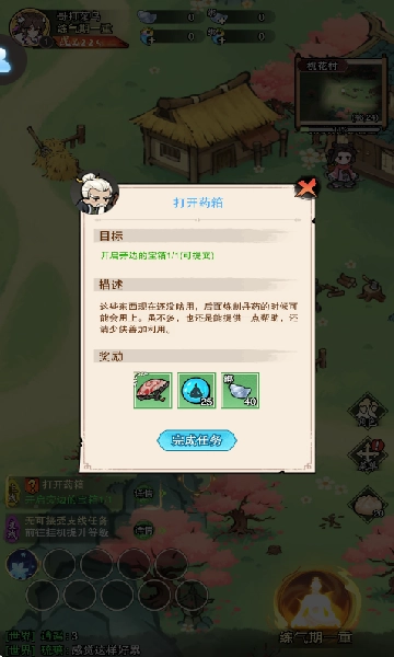 3、跟随着提示点击下方的任务,完成新手指导,了解玩法规则。