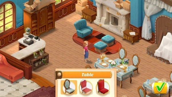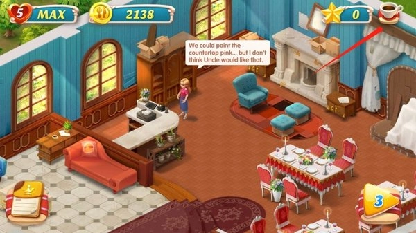 2、玩家能在游戏的过程中看到一点点装修到完好的餐厅,而且玩家能够自由的摆放各类物品。