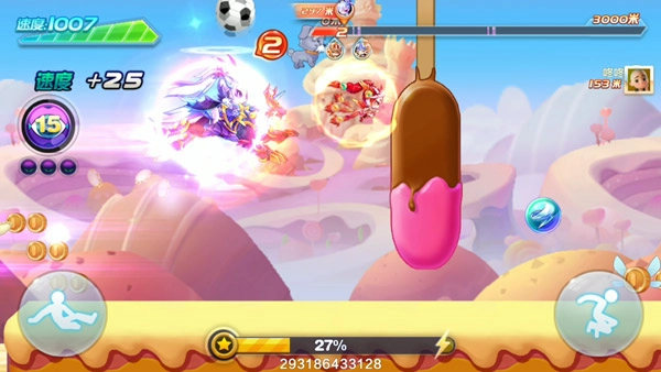 5、开局点出超级完美后,若遇到开局减速云,要么先不飞,待过了减速云再飞,要么直接3跳到减速云上方,卡滑翔放技能滑过减速云,建议选先不飞,暗黑大圣的技能可操作,发动技能按着不松,进入超级冲刺后立刻松手,这样节约能量,按1次技能就会扣能量,所以不要立马松手,若没吃满气力槽很容易浪费技能。