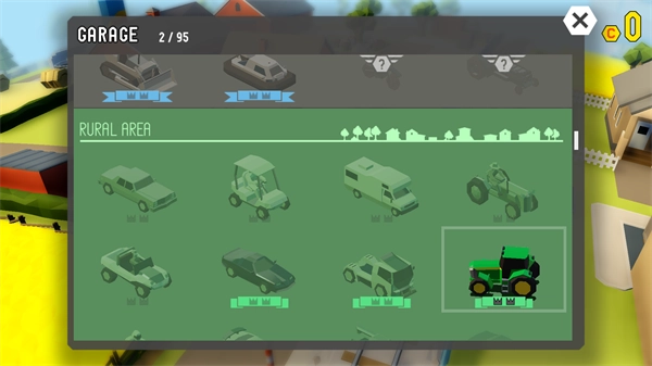 玩家可以选择很多车辆,每个车都有对应的地图供选择,车的种类有很多,从工业车辆到越野车辆,再到平常的小轿车,三轮车,农业车辆,甚至装甲车,应有尽有。游戏的地图也有很多,比如说乡村,市区,旱地,度假地等,每张地图的风格都不一样,有的地图甚至还有河流,玩家需要避开这些危险的地方,一旦中招,直接game over。