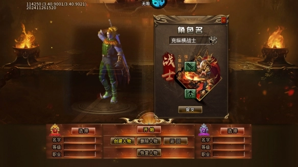 1、首先玩家能够挑选职业,输入角色名称之类的操作。