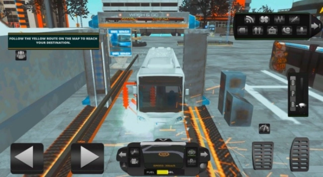 这段驾驶手感简直太真实了,通过虚拟摇杆搭配按钮来操控,油门、刹车和换挡全都得亲自操作,甚至连离合器配合起步这样的细节都完美还原,感觉跟开真的巴士没什么区别。
