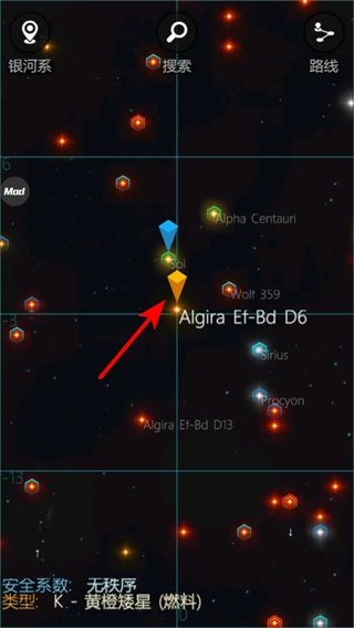 1、在星系地图界面,点击目标星球对应的标识,即可设定航行的目的地,这是规划路线过程中的关键步骤,通过这一选择能确保飞船准确抵达目标区域。