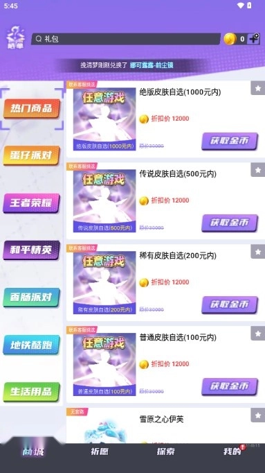 领皮乐园最新版是一款能免费领取皮肤的应用,里面集合了大量热门皮肤资源。新用户可以免费领取皮肤,整个过程没有任何套路。想获取心仪的皮肤,只需通过每日签到、观看广告等方式积累金币,就能兑换皮肤,而且兑换后皮肤会秒到账,确实是一款相当不错的免费领皮肤工具。