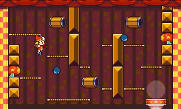 2、在走钢丝剧院游戏中,关卡类型丰富多样。例如图中展示的关卡就配备了弹簧装置,借助它可以帮助玩家顺利越过堆叠起来的障碍物。