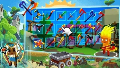 将各种不同的武器装备随机丢在竞技场周围,找到新的武器提升自己的战斗力。