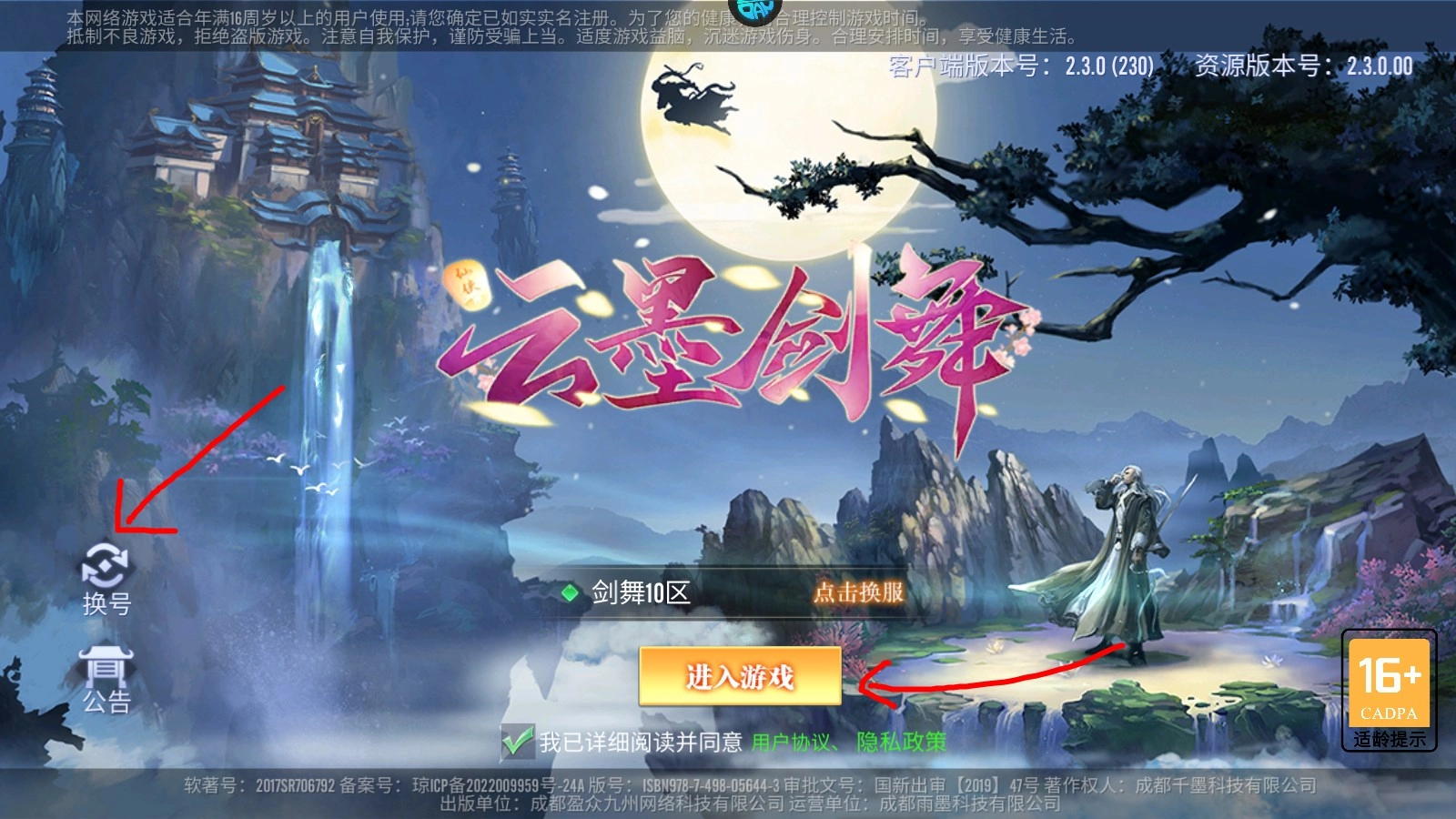 1、玩家打开游戏并登录账号后,会看到如下界面,左下角可进行换号操作,之后点击进入游戏即可。