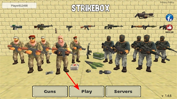 在游戏主界面,点击Play按钮就能进入对战模式,这是开启射击对战的关键步骤,精准点击方可进入战场。