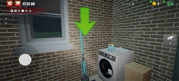 1、启动游戏后,借助操控盘来操控角色移动,并拾取场景里的各类工具等;