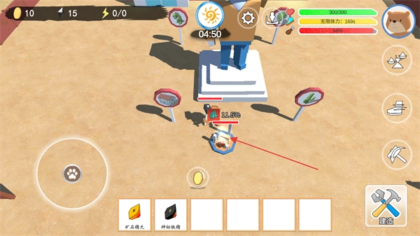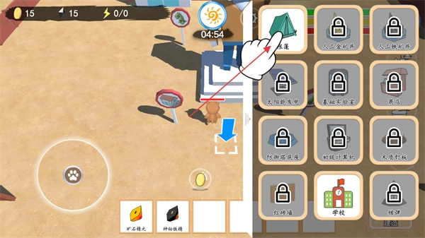 3、等待帐篷建造完成显示建造进度,提升生存设施。