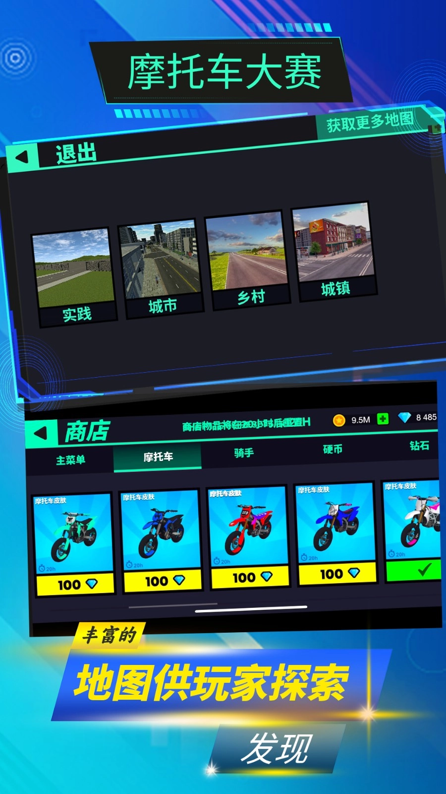 2、设有幸运旋转、商店等特色系统,可通过这些系统获取摩托车皮肤、钻石等资源,丰富游戏体验。