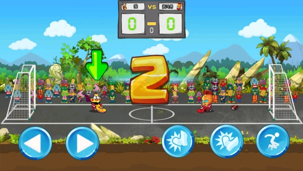 1、点击“开始游戏”按钮,就能进入精彩的足球大乱斗环节,紧张刺激的背景氛围也会随之而来。