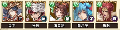 黄月英提供法阵伤害,张苞与张星彩能保保护我方输出武将,祝融可作为我方输出主力。