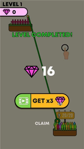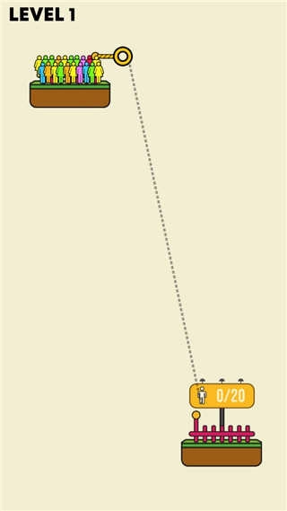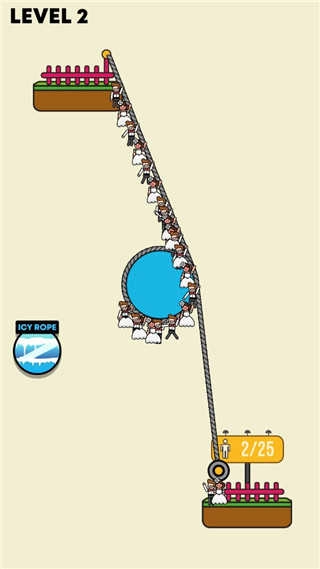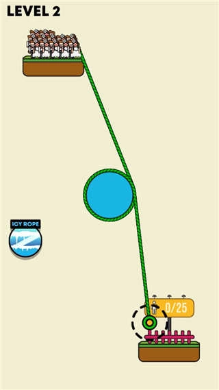 5、然后进入第二关便可开始游戏。同理,玩家需要搭建绳索,让这些人都到达安全区;