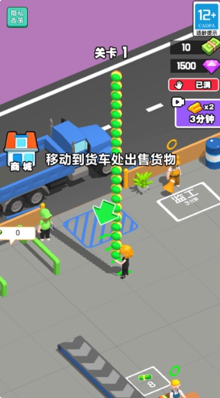 4、可以去移动到货车处出售货物,移动到存钱处收集金钱,使用金钱来扩大工厂的规模来更好的生产货物。