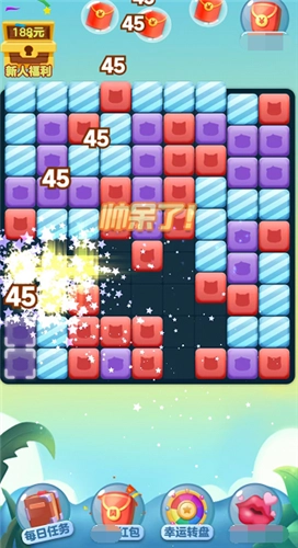 1、精心设计的福利消除关卡等你来挑战,丰富多样的玩法将为你带来更多不同的挑战乐趣。 2、每天都有不同的消除任务等待你去完成,完成任务即可轻松获取更多红包,玩法十分丰富。
