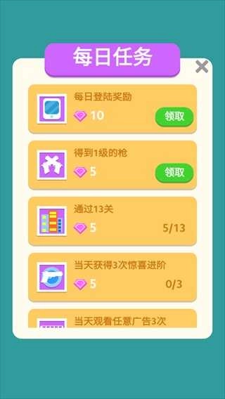 1、采用卡通风和相应的配乐,让玩家有沉浸式的射击感受。