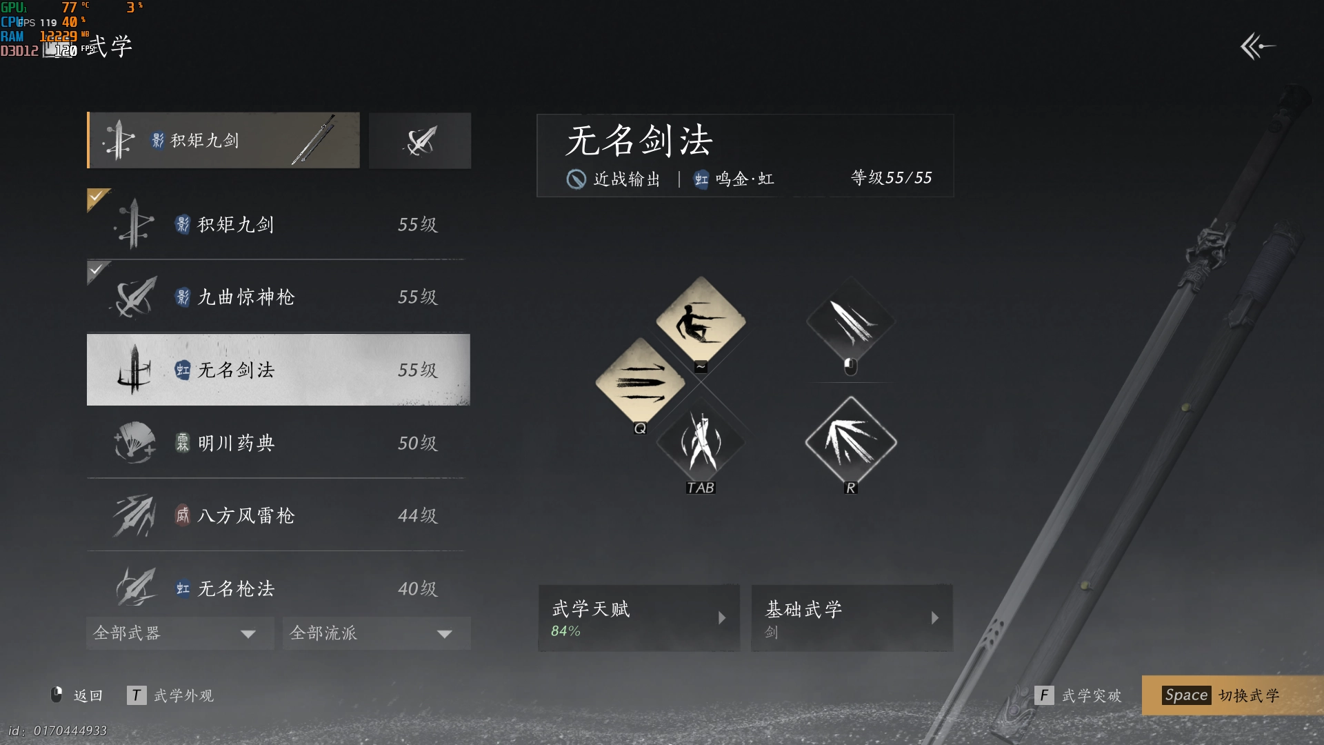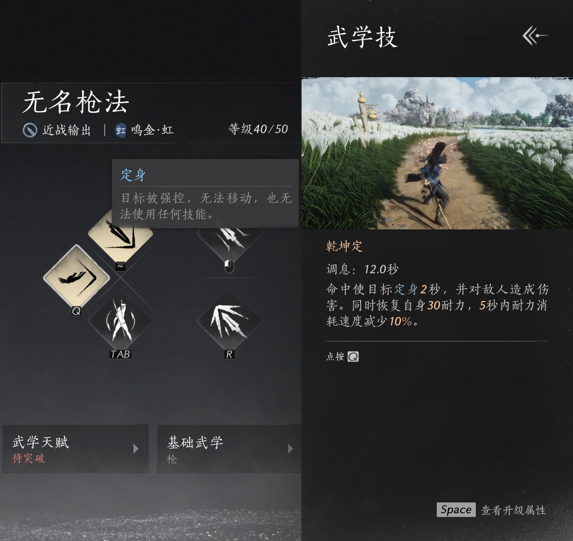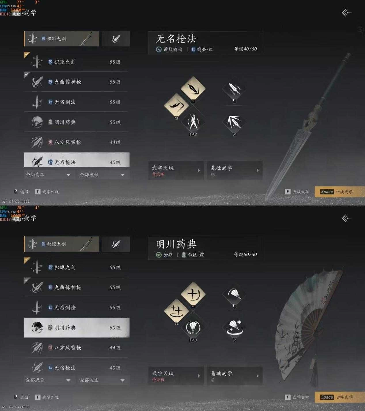 对高输出有需求的就选择枪法,因为枪法的武学技可以马上恢复并暂时减少我们耐力的损耗,因为无名剑法在搭配无名心法后使用剑气的耐力损耗会变大,导致有些关键时候我们释放不了闪避或是立马准备第二次攻击。