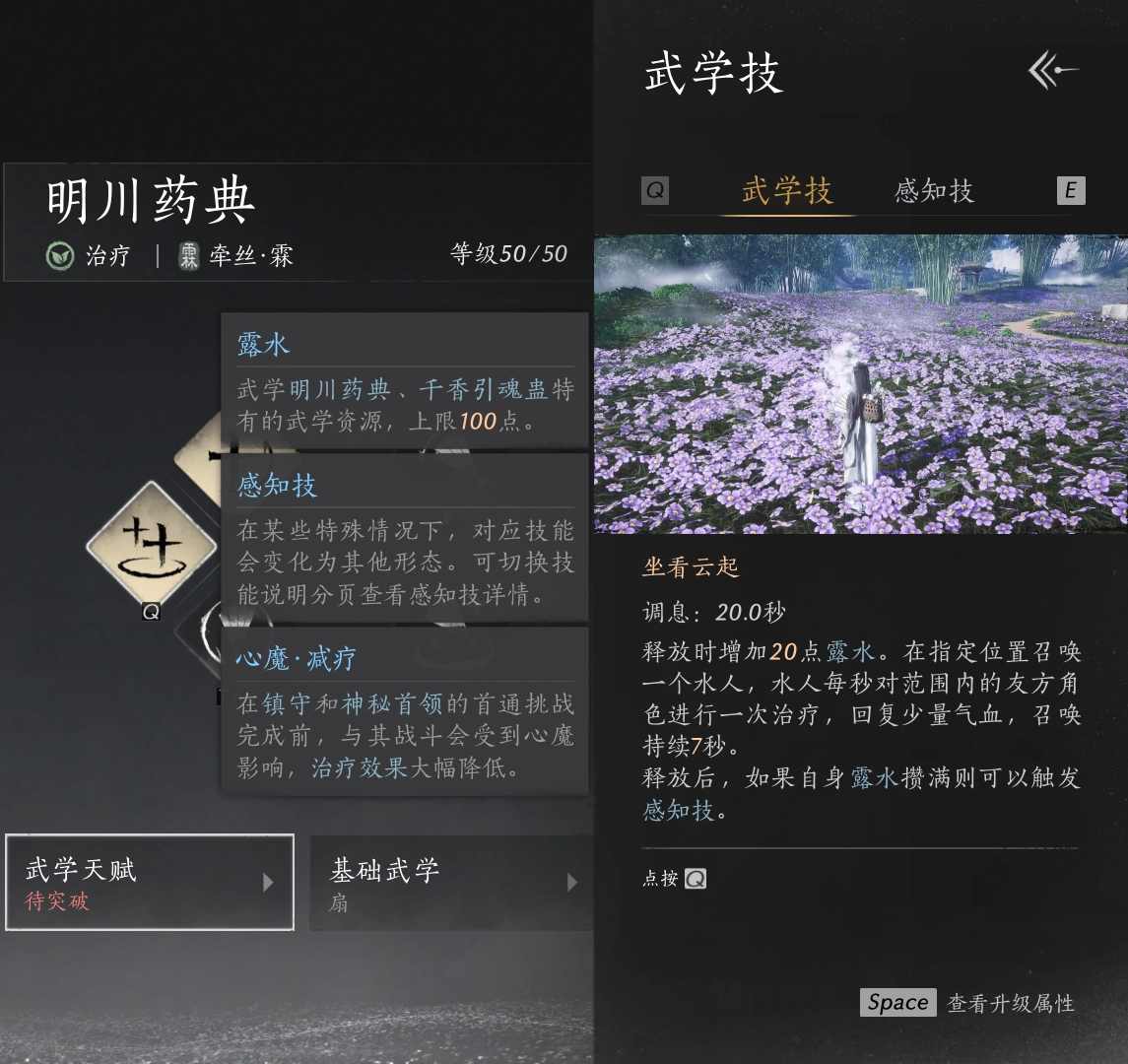 君臣药:明川药典的专属心法,能提升武学技的治疗效果,如果副武器选择扇子且不喜欢切易武技的萌新的可以试试。