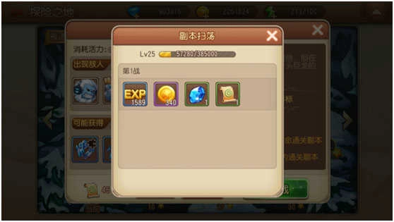 探险之地是个人的PvE副本,每次挑战成功都可以获得经验、金币和道具的奖励,而且还可以顺道完成各种任务,在活力充裕的时候,可以进行副本扫荡,快速的获得大量经验。