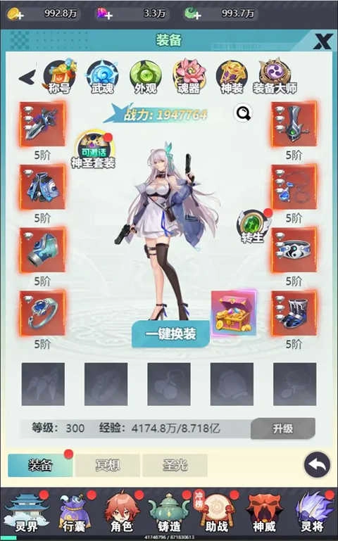 神圣装备(红装),是前期战力提升最快的系统。通过决战巅峰副本和斩妖除魔玩法每日可以获得一定数量的神圣装备(红装),通过不断激活神圣装备可获得大量属性战力,同时可获得套装效果。除了战斗副本,装备召唤和商店也可以有高级装备获得。别忘记每日领取哦。