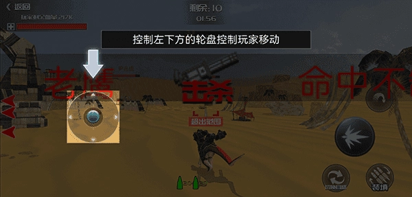 2、控制左下方的轮盘控制恐龙的移动,另一只手在右边屏幕中滑动可以移动视角