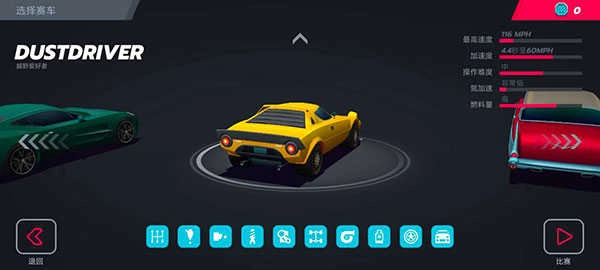 1、可以自由选择各种赛车、赛道和其他对手展开竞速对决。