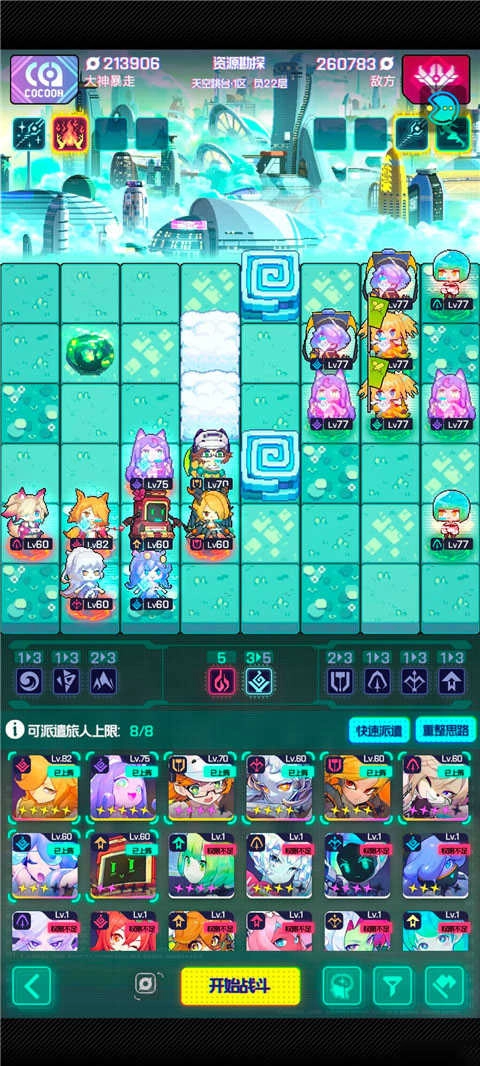 这游戏的初始站位非常重要!同样的阵容不同的站位完全可能会有不同的结果,要尽可能保证输出位存活、多个特工切到同一C位、占据有利地形、不要卡住自己等等。其中还有一些单独角色的站位技巧。