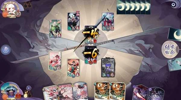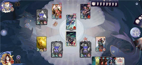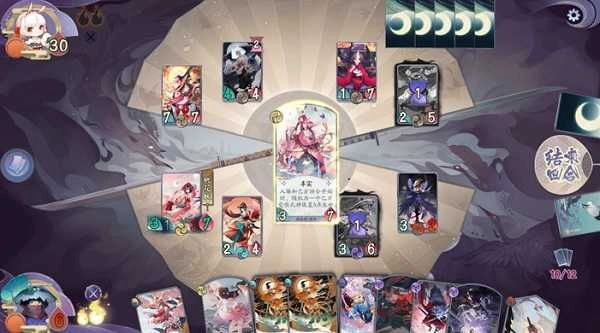 完整的阵容包括四位式神,每位式神携带8张专属卡牌,每回合从牌库中抽取一张卡牌置入手牌中。