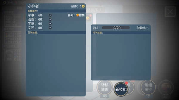 5、提升英雄的各项属性,涵盖军事、治理、学识与文艺等方面;