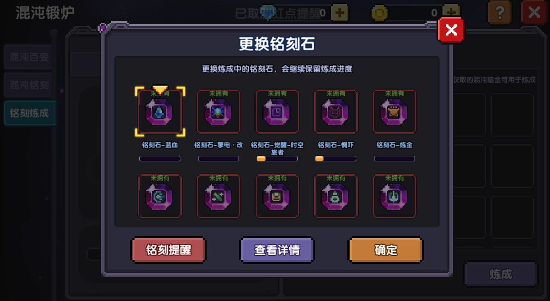 1.现在中途更换所选的铭刻石,正在炼成的铭刻石进度将会保留,并可随时切换铭刻石
