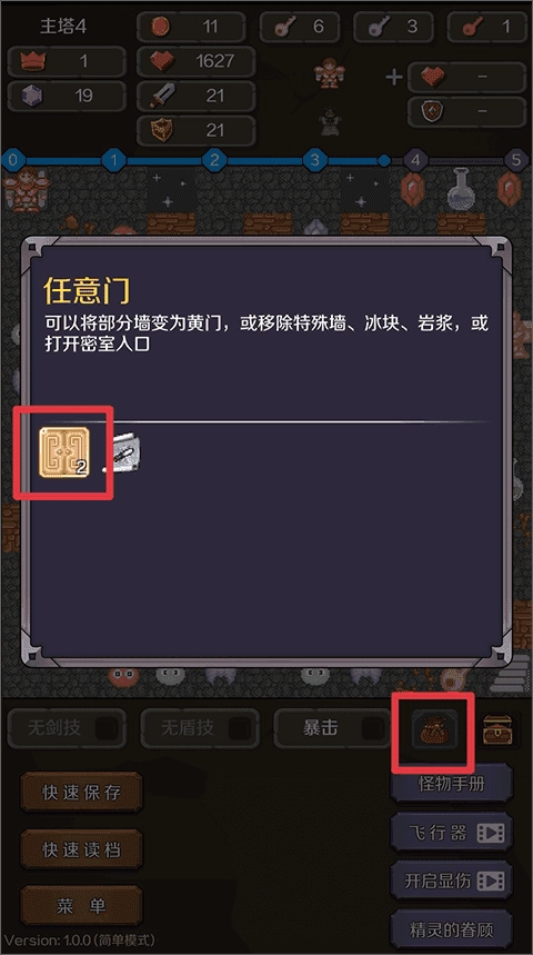 4、例如“任意门”,使用后可以将某些墙壁转换为黄门,或移除特殊障碍,如冰块、岩浆,甚至打开隐秘密室入口。