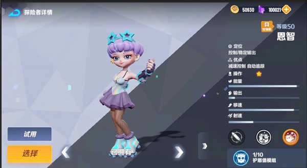 第三名英雄可以考虑控制性输出类--恩智。恩智可以发动小技能,对准心方向对手起舞,召唤一个减速光柱,被光柱笼罩的对手移动速度将降低40%。