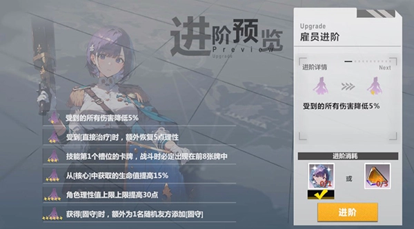 3、进阶:需要消耗相同雇员的雇员刻印,进阶后可以进一步提升雇员。