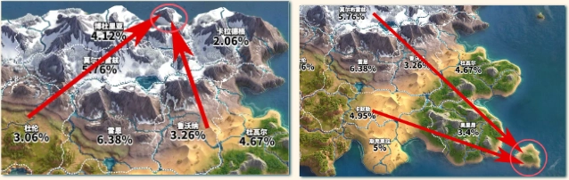 在这四个资源地区中,将会各拥有一个【雕像传送门】,其中左侧【杜伦】与右侧【鲁沃纳】的传送门通往上方的岛屿;上方【莫尔布雷兹】与下方【卡默勒】的传送门通往下方的岛屿。