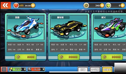 想要获得新车玩家就要进行抽取。点击游戏主界面里面的商城,就可以使用金钱来购买新的四驱车或者抽奖获取了。四驱车的性能越好就越难获取,也就越珍贵。