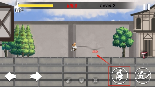 3、当还是小火柴人时点击图示进行跳跃,可进行多段跳