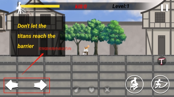 6、在变身巨人的时期,点击蓝框标志可以滑铲,点击红框标识可发动光波攻击