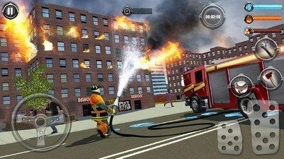 3、游戏玩法十分简单,玩家要迅速响应火灾警报,驾驶消防车赶赴火灾现场,运用各类消防器材和工具来扑灭火焰。