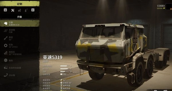 第二强感觉就这辆,亚速5319。速度中规中矩,拉货能力ss,越野能力sss。缺点就是油箱200,需要不断找加油站但是真的强,多注意一下就好,基本没有它越不了的野,也没有它拉不了的货。